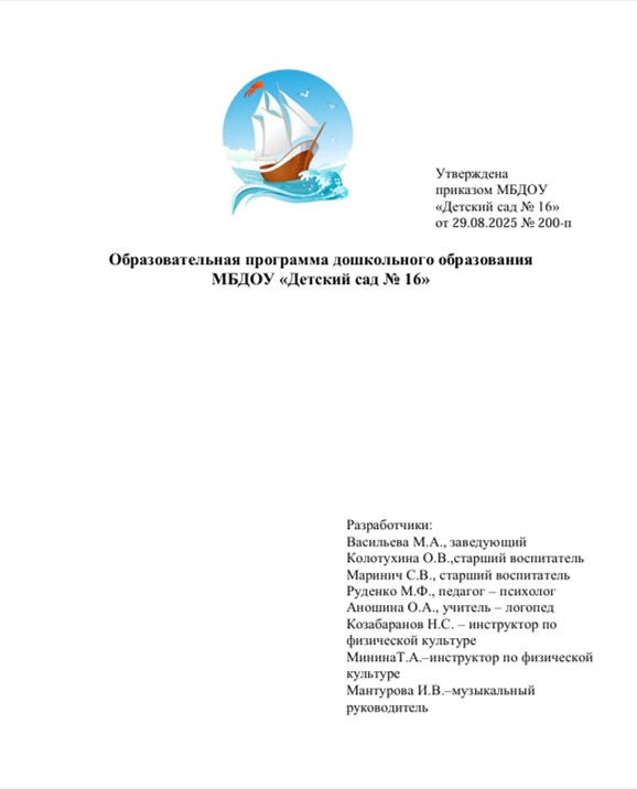 Образовательная программа дошкольного образования МБДОУ "Детский сад № 16"